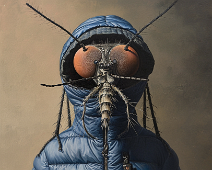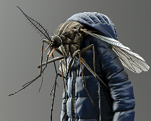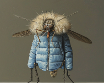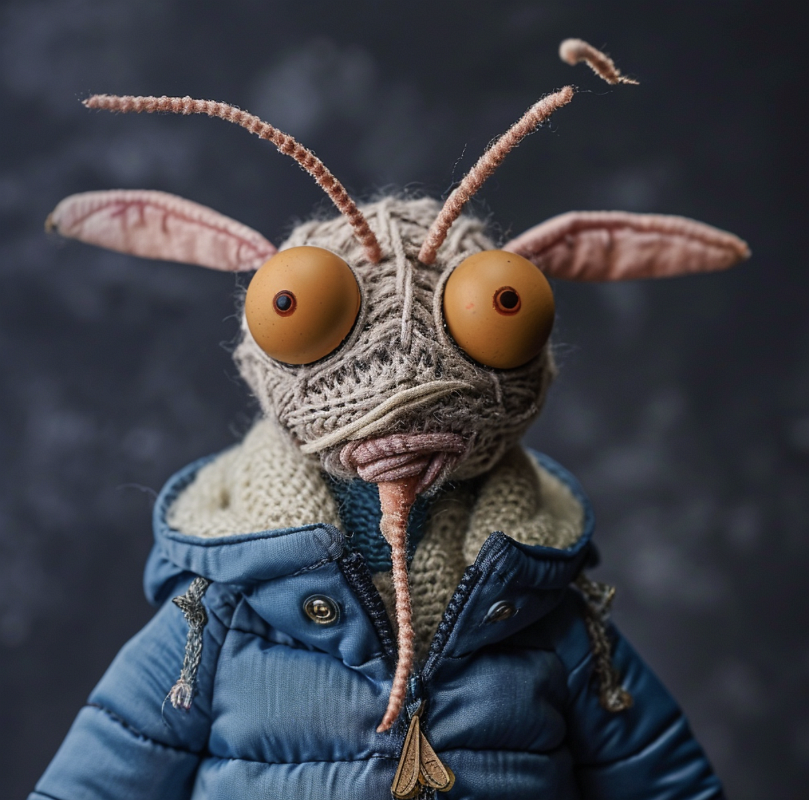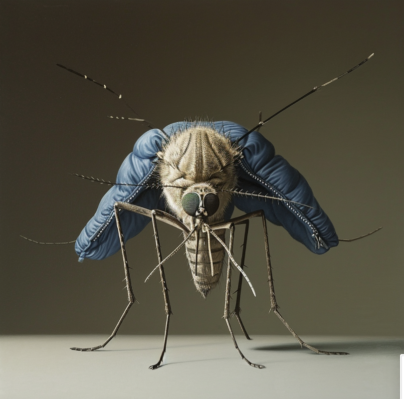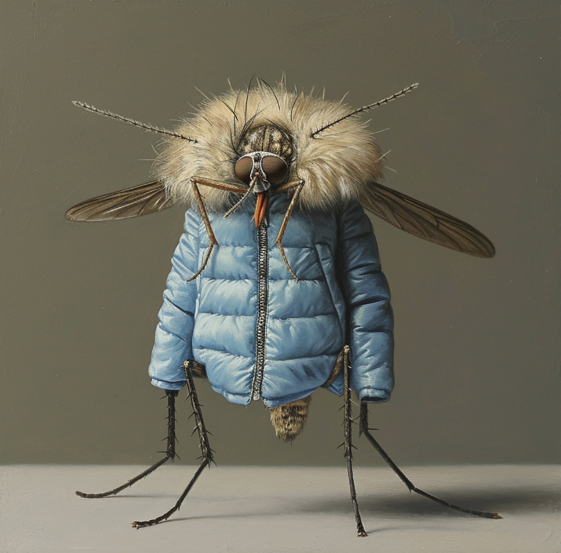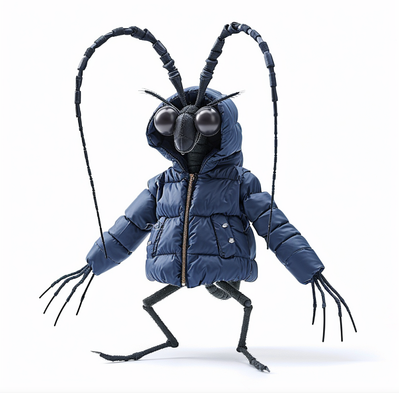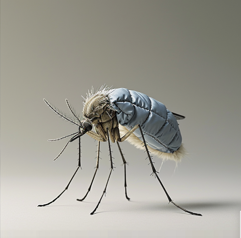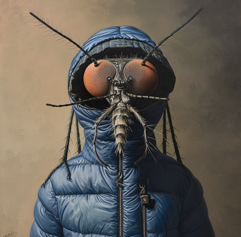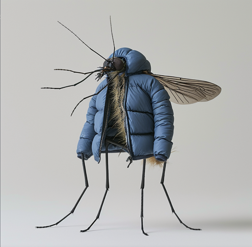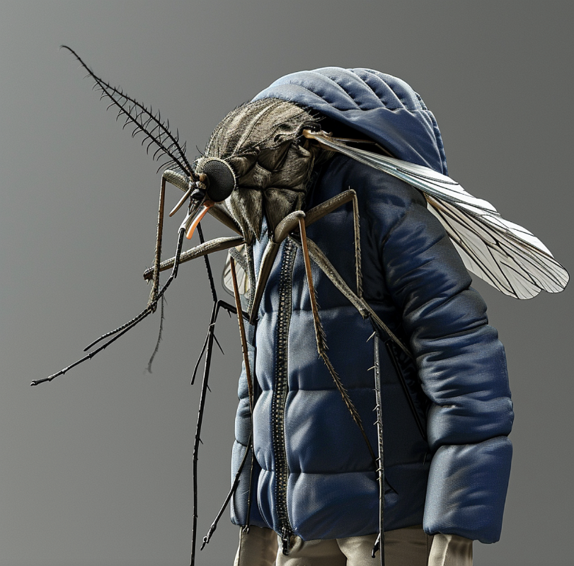 A mosquito in a blue down jacket